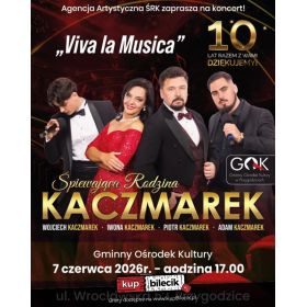 bilety: "Viva La Musica" to zupełnie nowy koncert jedynej w Polsce rodziny śpiewającej muzykę klasyczną. W wykonaniu Śpiewającej Rodziny Kaczmarek usłyszycie państwo tym razem najpiękniejsze melodie z operetki min. Wesołej wdówki, Hrabiny Marizy, Księżniczki Czardasza, czy Guditty, przeboje z musicali min: Skrzypka na dachu, My fair lady czy Upiora w operze, a także piękne standardy muzyki rozrywkowej, piosenki z repertuaru Franka Sinatry Elvisa Presleya, Poula Anki czy Luisa Armstronga. Śpiewająca Rodzina Kaczmarków artyści: Iwona Kaczmarek, Piotr Kaczmarek, Wojciech Kaczmarek, Adam KaczmarekŚpiewająca Rodzina Kaczmarków - dobrze znana w całej Polsce. Koncertują razem od 4 lat. Adam i Wojtek dali się poznać szerokiej publiczności po występie w programie Mam talent, odnosząc tamże ogromny sukces. Adam Karczmarek to również gość Festiwalu Piosenki Krajowej w Opolu. Bilety do nabycia na: KupBilecik.pl |